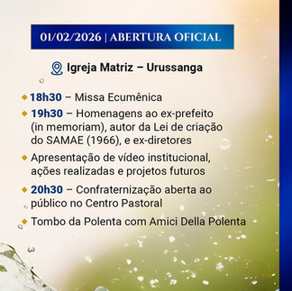 Durante a solenidade, será prestada homenagem ao ex-prefeito Roni Zaniboni (in memoriam), responsável pela lei que instituiu o Samae em 1966, e os ex-diretores que contribuíram com a trajetória da autarquia também serão reconhecidos. Um vídeo institucional será exibido e os projetos futuros da autarquia vão ser apresentados. Após a solenidade, a celebração continua no Salão Paroquial da Igreja Matriz, com o tradicional Tombo da Polenta, promovido pelo grupo Amici Della Polenta.